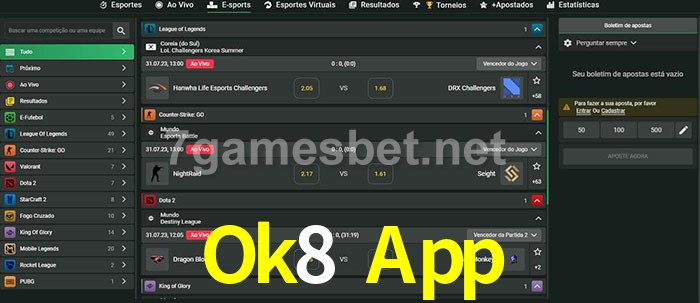 A aposta Ok8 App oferece aos jogadores a experiência mais conveniente de apostas em eSports!